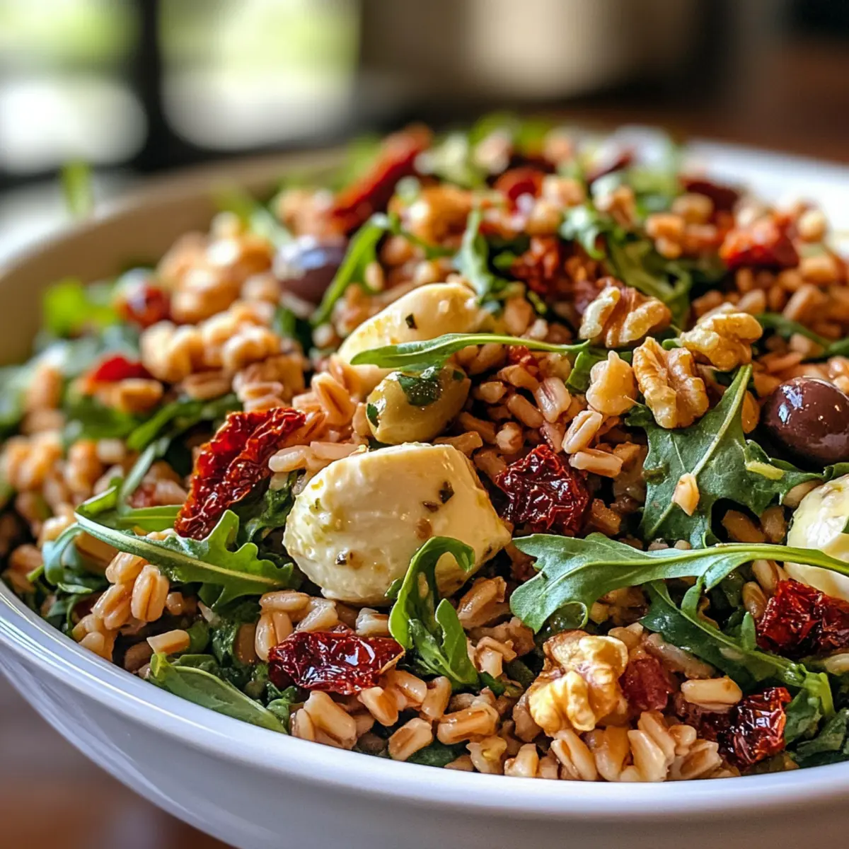 Textural Delight: Enjoy the fun mix of chewy farro, creamy mozzarella, and crunchy walnuts, creating an enticing mouthfeel that keeps every bite interesting.