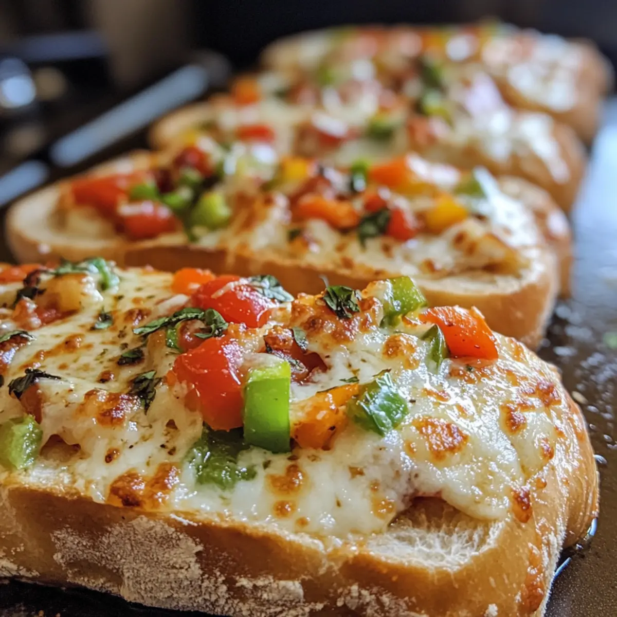 Crispy and Gooey: The delightful combination of a crispy baguette base paired with gooey, melted cheese promises a satisfying crunch in every bite.