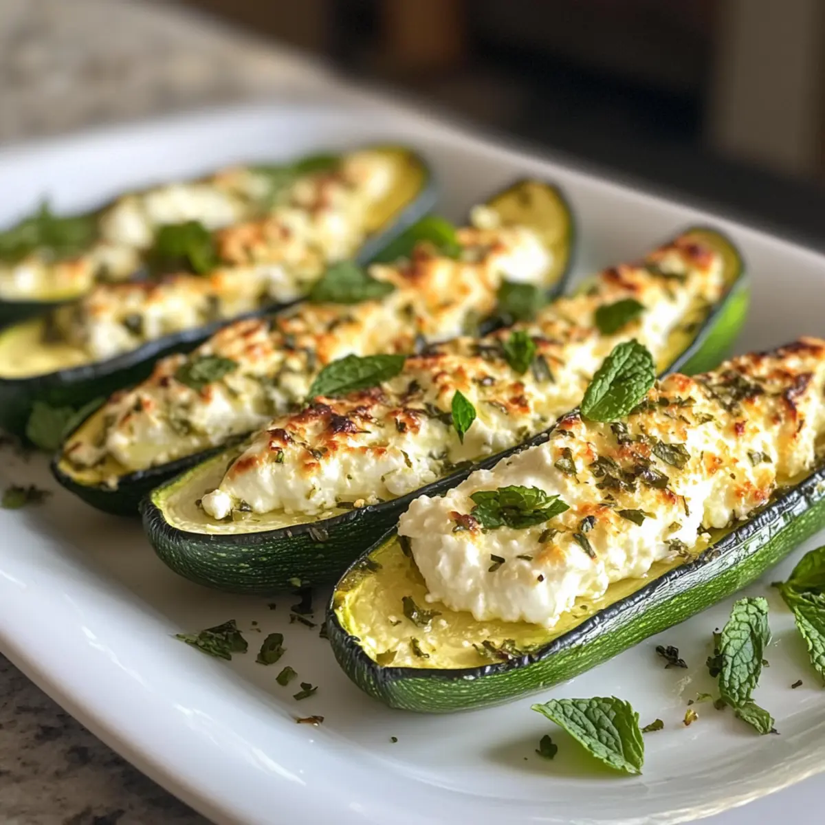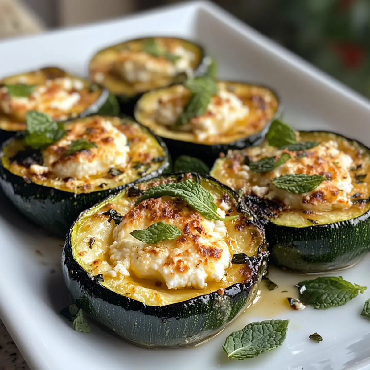 Sprinkle half of your fresh mint evenly into the slits of the zucchini, followed by inserting generous strips of goat cheese into each pocket. Top with the remaining mint leaves, ensuring the filling is packed in nicely. This layering of flavors will create that creamy, tangy bite in your Baked Zucchini with Goat Cheese that’s simply irresistible.