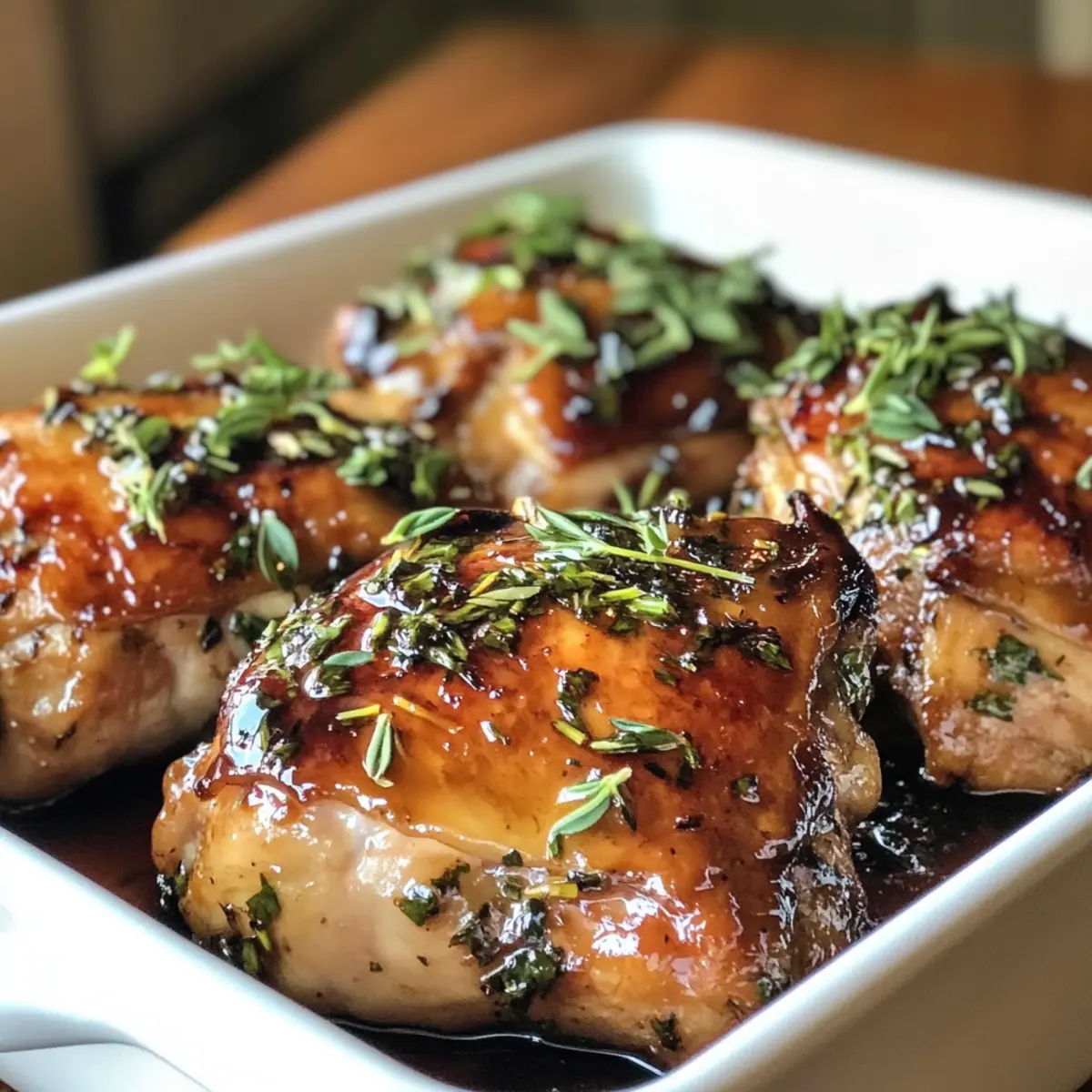 Balsamic Herb Baked Chicken Thighs deliver a juicy flavor explosion with fresh herbs and tangy balsamic vinegar.