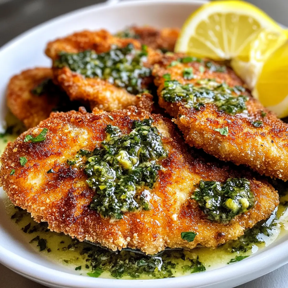 Chicken Salmoriglio features tender, breaded chicken cutlets smothered in a homemade zesty lemon-garlic sauce for a comforting, flavorful dish.
