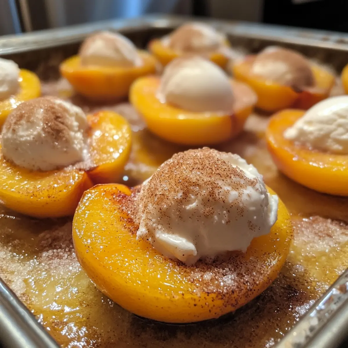 • Vanilla Ice Cream – A classic pairing that contrasts the warm peaches; sweetened mascarpone or whipped cream can also be delightful alternatives.