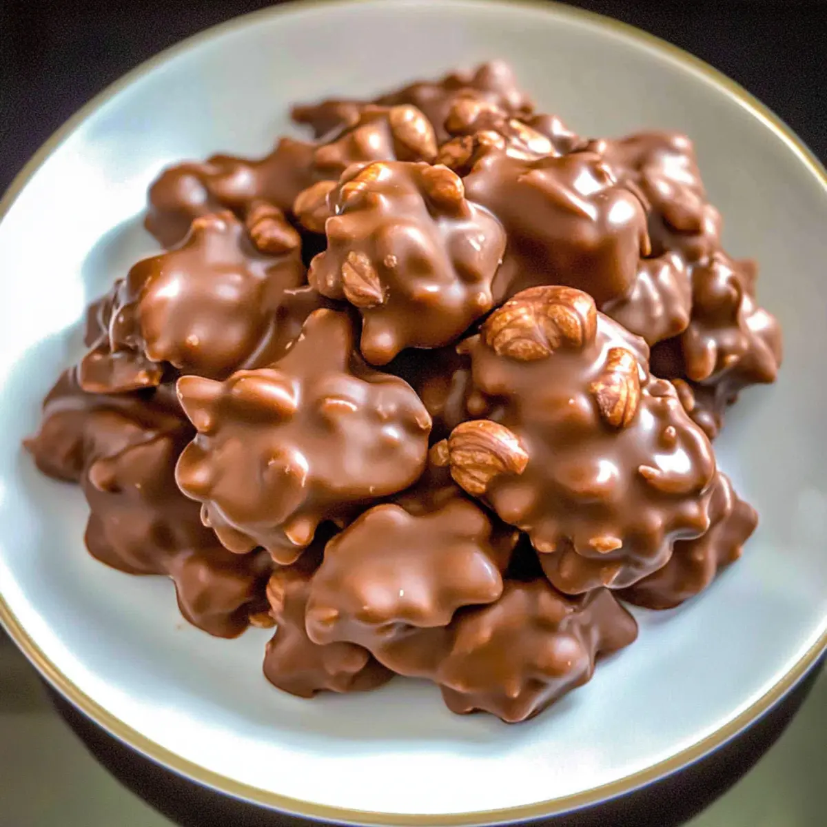 Cover the slow cooker and set it to low heat. Allow the mixture to cook for 1 hour. As it cooks, the delightful aroma of melting chocolate and nuts will fill your kitchen, creating an enticing scent that will draw everyone in—a true hallmark of the holidays!