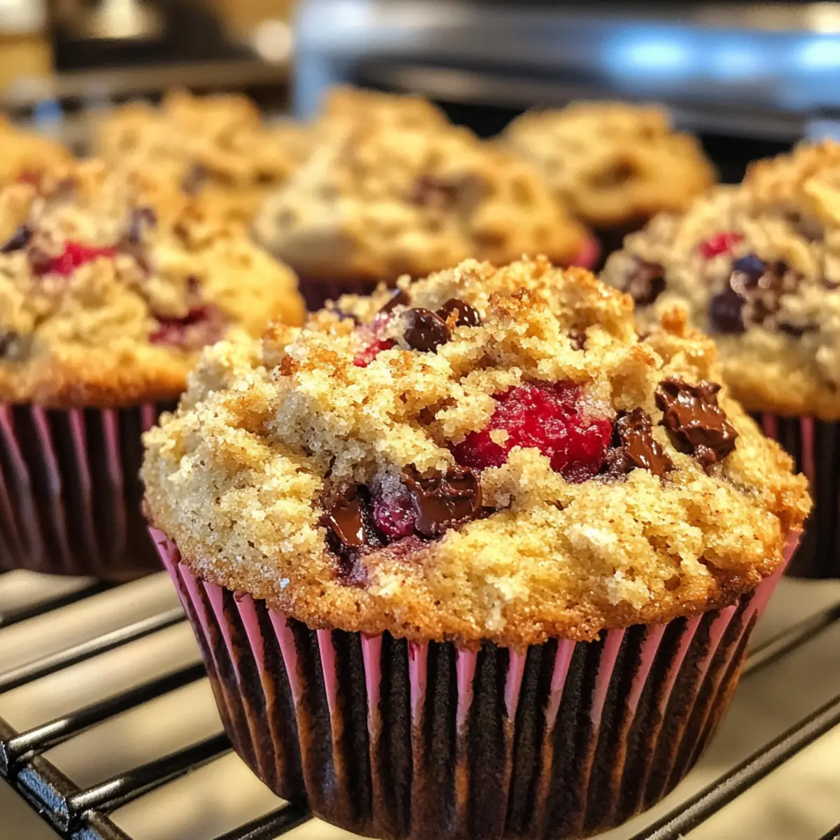 Delicious Dark Chocolate Chunk Raspberry Crumb Muffins to Savor