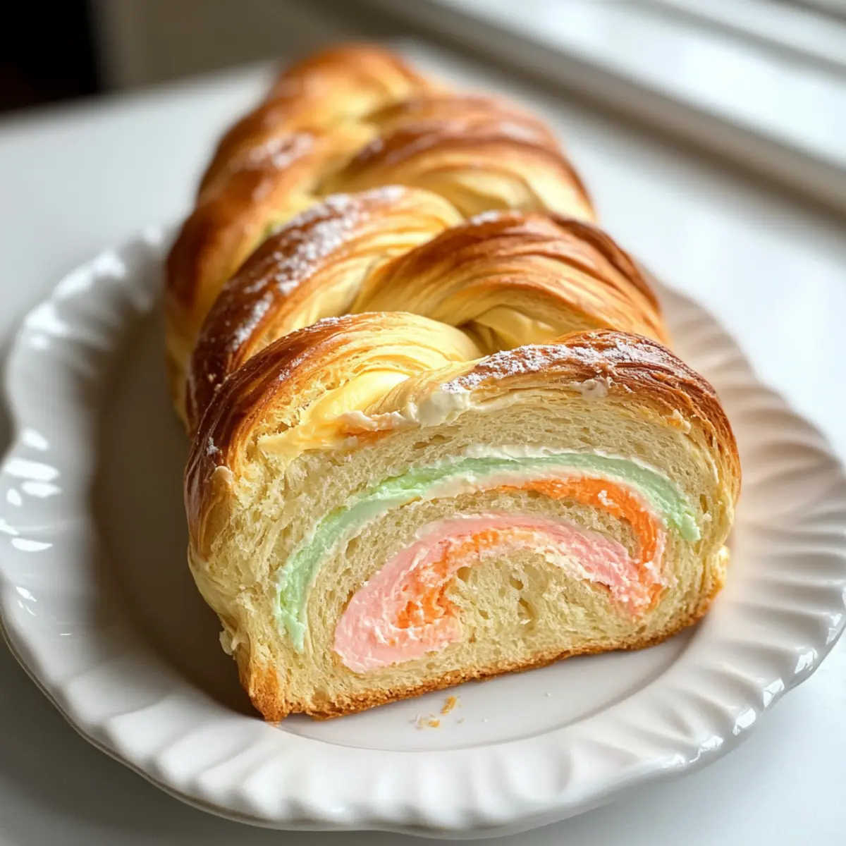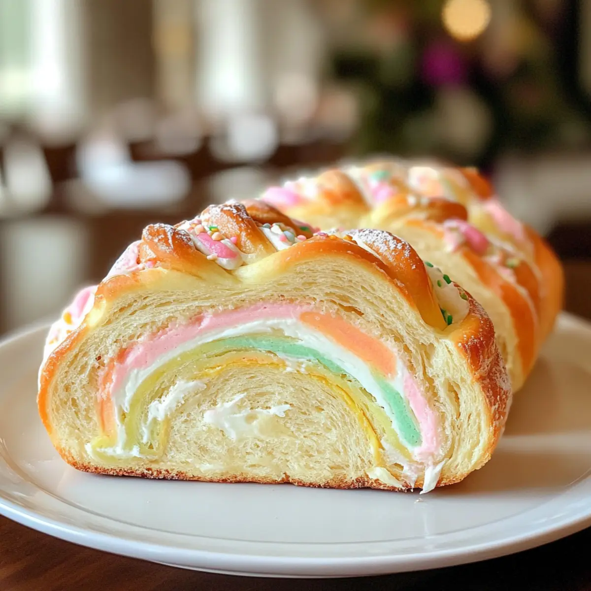 This Easter Cream Cheese Babka is a delightful centerpiece for your brunch, offering a rich, buttery brioche filled with vibrant pastel cream cheese.