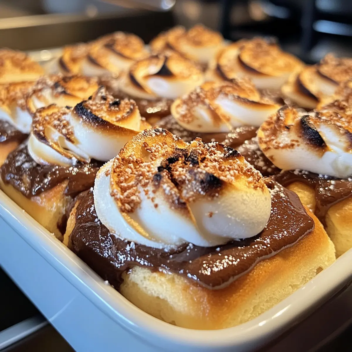 Spread the marshmallow meringue generously over the top of each cooled roll. Using a kitchen torch or the broiler in your oven, gently toast the meringue until it is golden brown, being careful to monitor closely to avoid burning. Let the meringue cool slightly before serving, allowing it to set while you marvel at your delicious Gooey S’mores Rolls!