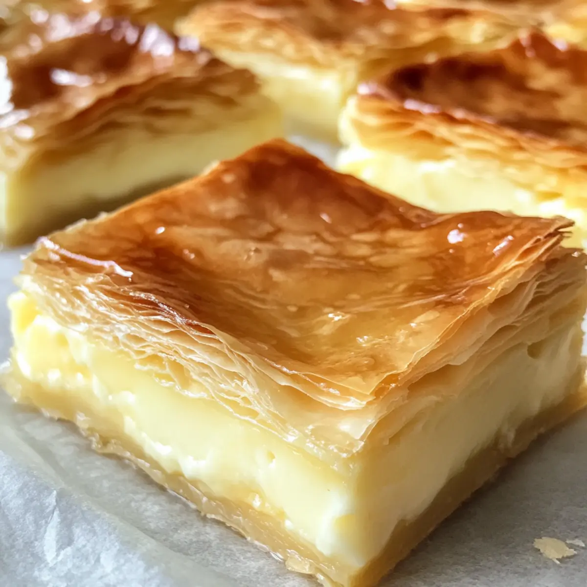 - Pour the creamy custard over the layered phyllo base, cover with additional phyllo layers while brushing with butter, ensuring there are at least 6 layers on top. Tuck the edges in gently.