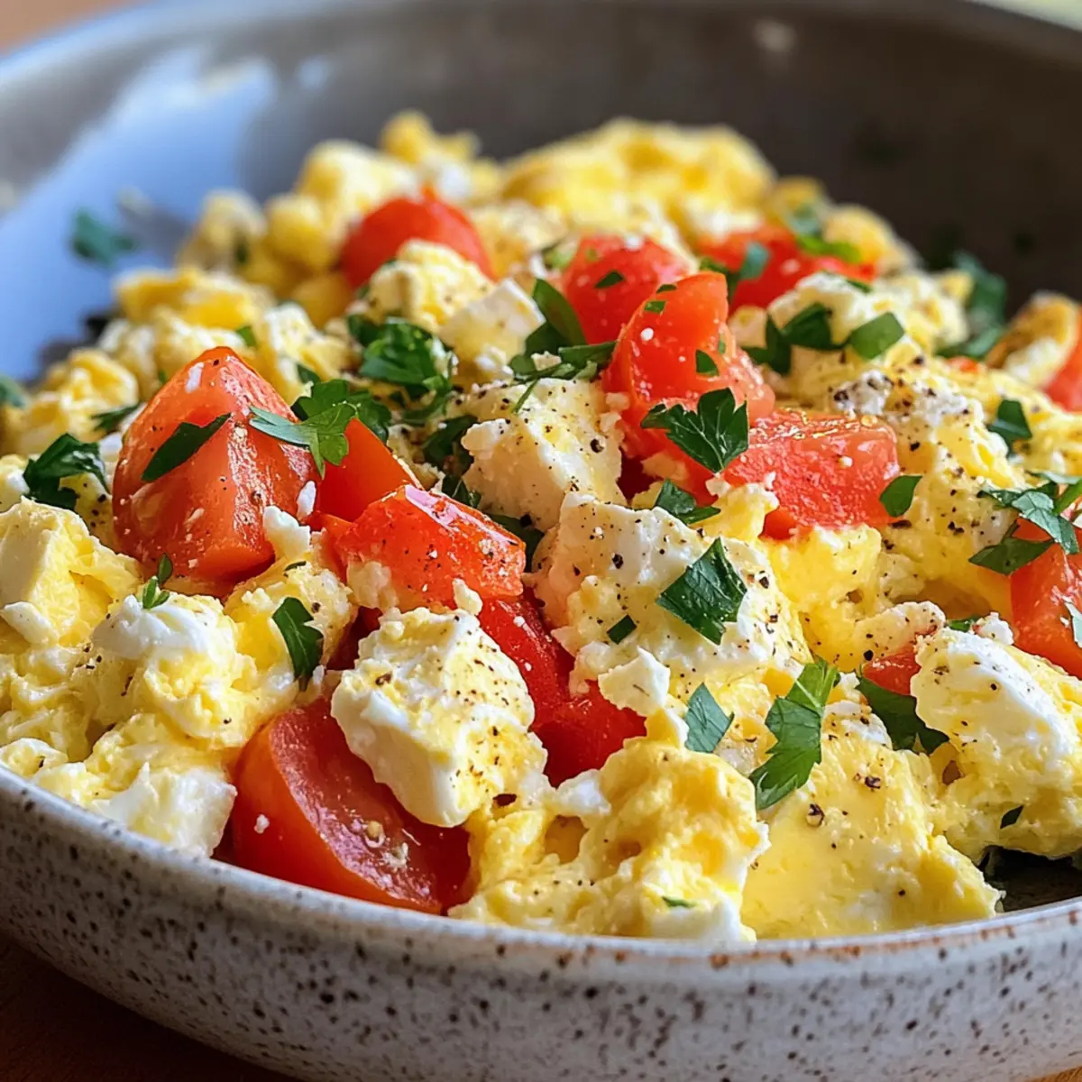 LEFTOVERS Love: Store any leftover Mediterranean scrambled eggs in an airtight container; they can be reheated gently with a splash of water to maintain moisture.