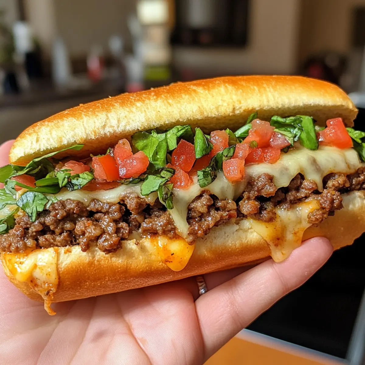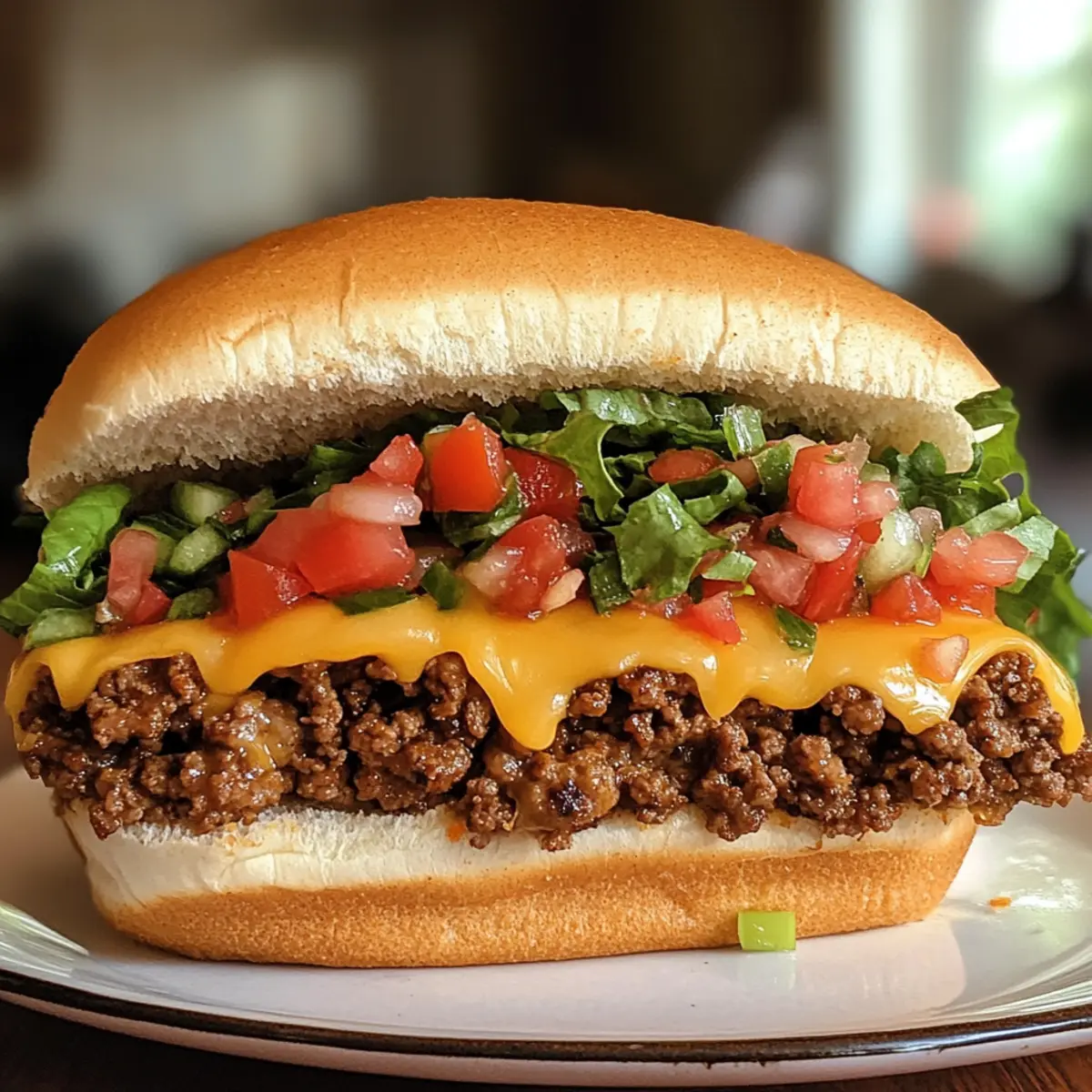 - Assemble the sandwich with beef and cheese mixture, lettuce, and pico de gallo.