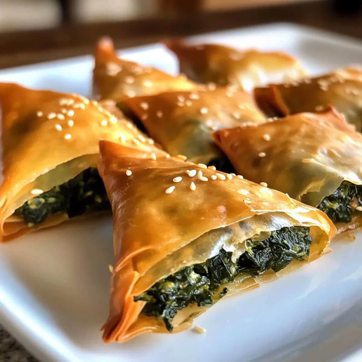 - Bake: Preheat oven to 350°F (175°C), line baking sheet, brush assembled spanakopita with egg wash, sprinkle sesame seeds, and bake for 30 minutes until golden.