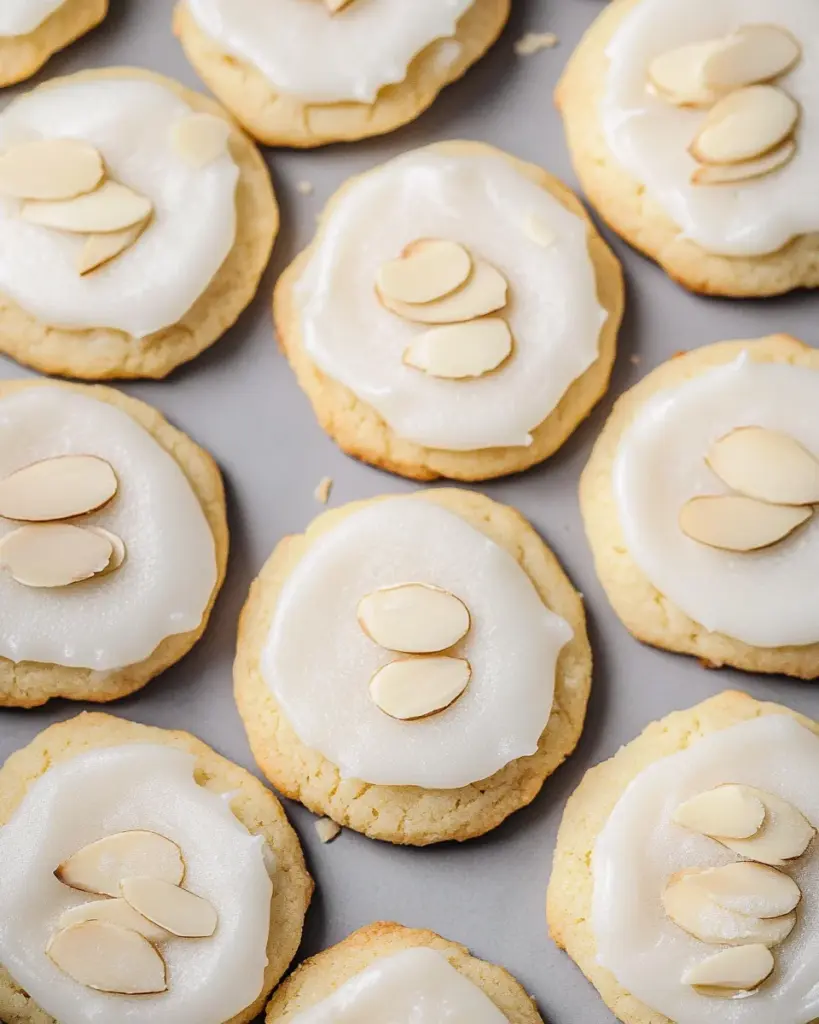 The almond buttercream frosting adds an extra layer of richness, perfectly complementing the cookie base. Light, fluffy, and slightly sweet, it enhances the almond flavor without overpowering it.