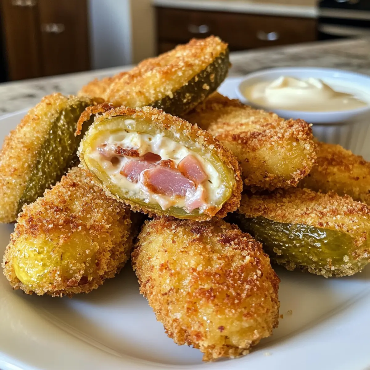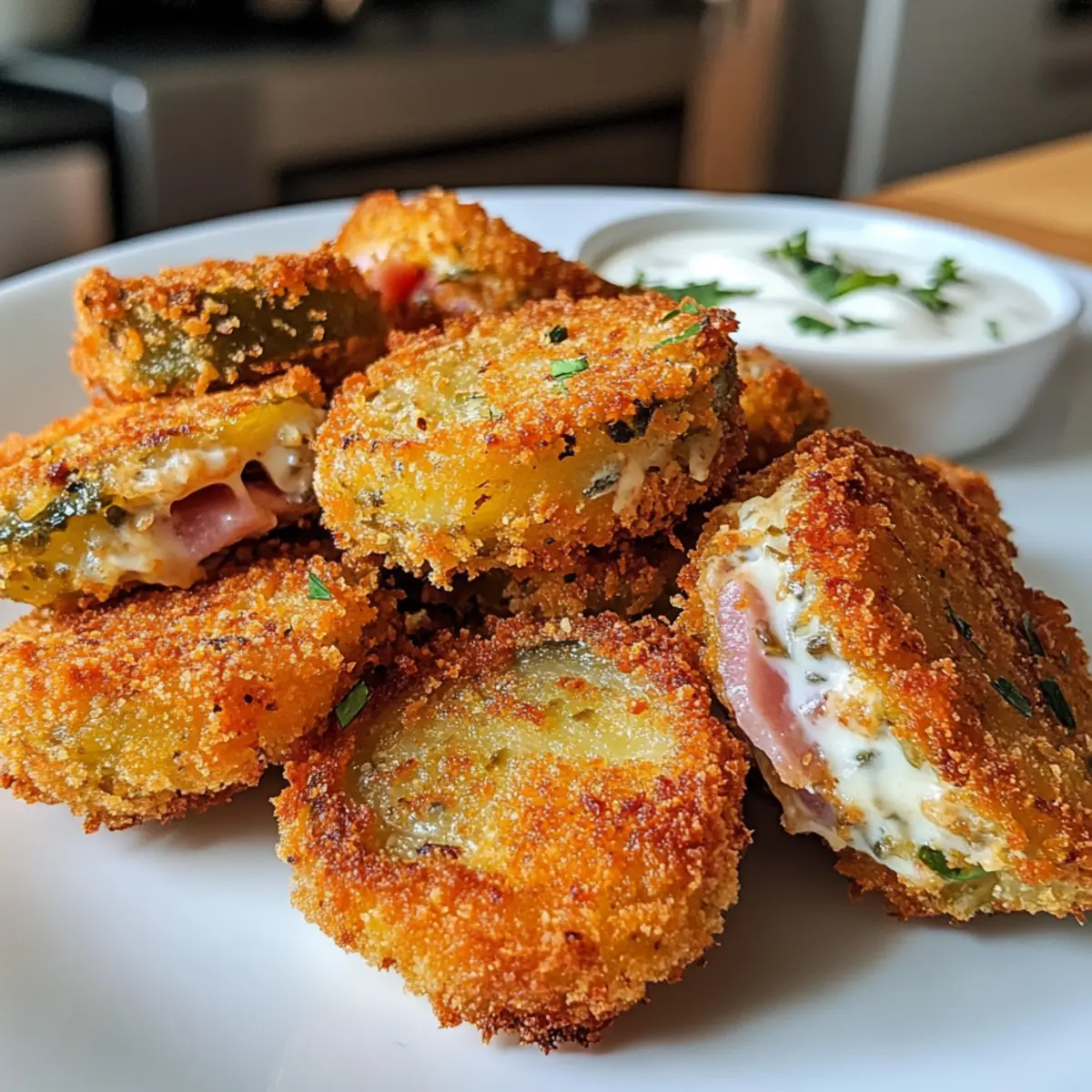 These Stuffed Fried Pickles are absolutely perfect for meal prep enthusiasts! You can hollow out the pickles and prepare the cheese and ham stuffing up to 24 hours in advance, simply covering the prepared components and refrigerating them to keep everything fresh. When ready to enjoy, assemble the pickles and coat them right before frying for crispy textures that are just as delicious as if made fresh. If desired, you can also fry them ahead of time and store the cooked pickles in an airtight container in the refrigerator for up to 3 days. Just reheat them in the oven at 375°F (190°C) for about 10 minutes to restore that delightful crunch!