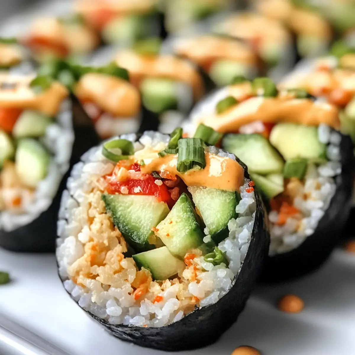 These sushi cups are perfect for meal prep, allowing busy home cooks to enjoy fresh flavors without the last-minute rush! You can prepare the sushi rice and mold it into cups up to 24 hours in advance; simply store them in the refrigerator in an airtight container to maintain their texture. Additionally, chop your veggies and mix the filling up to 3 days ahead, keeping them stored separately to prevent sogginess. When you’re ready to serve, just fill the rice cups with the prepared veggie mix, drizzle with spicy mayo, and garnish with black sesame seeds for a delightful presentation. You’ll have gourmet sushi cups just as delicious as if you made them fresh!