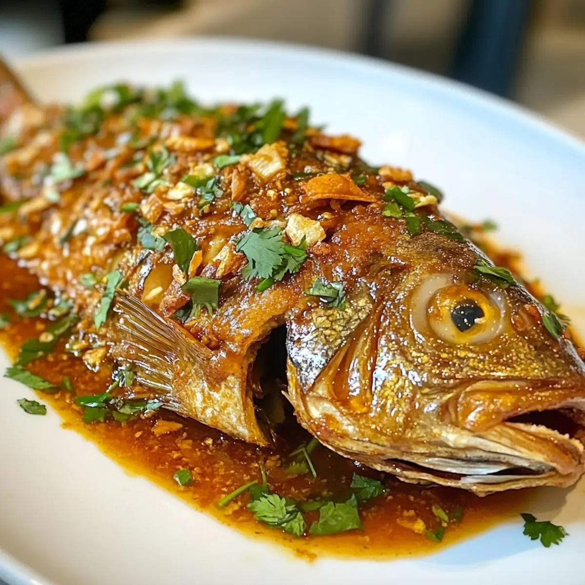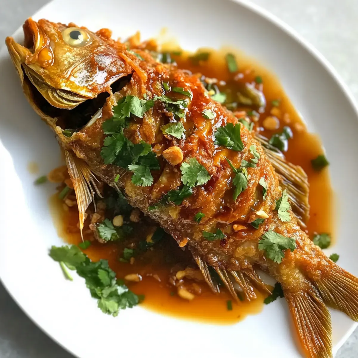 Place the fried fish onto a serving platter, generously drenching it with the luscious tamarind sauce. For an added touch, garnish with fresh herbs like cilantro or basil to brighten the dish. Your Thai Fried Fish With Tamarind Sauce is now beautifully presented and ready to delight your guests!