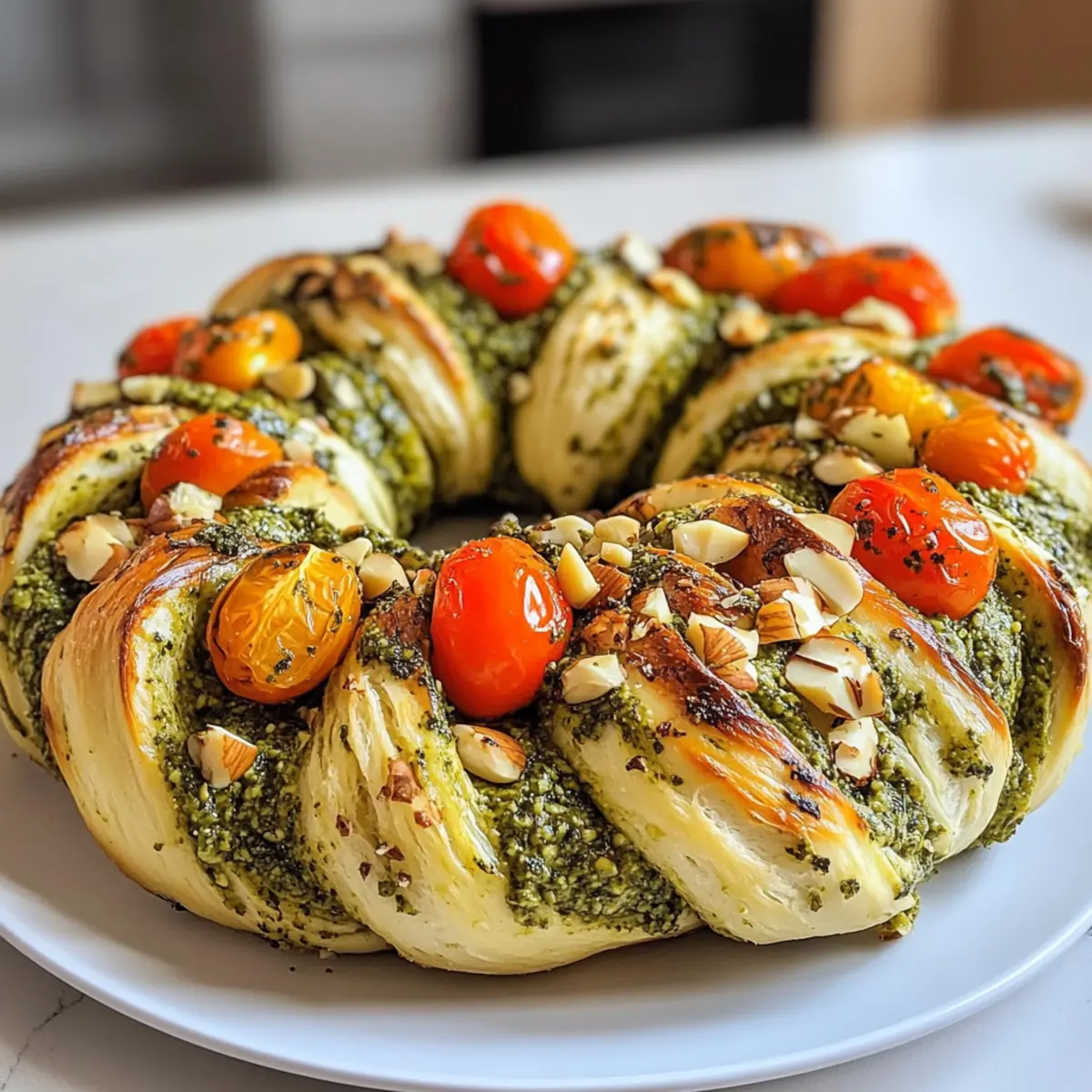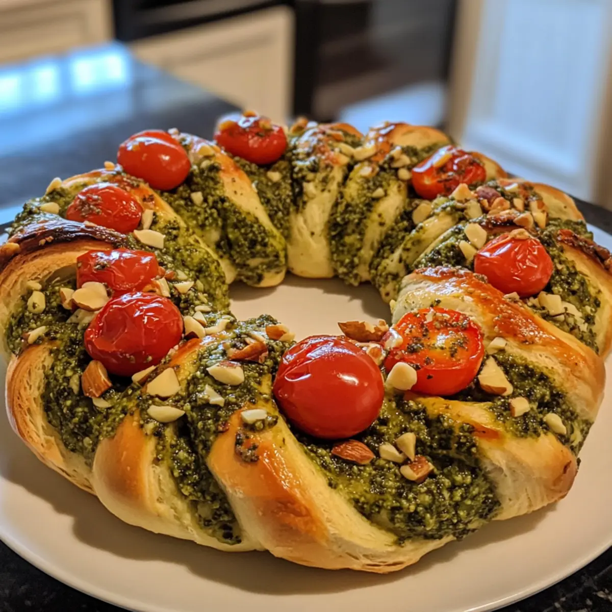 Craft your Vegan Pesto Bread Wreath and bring a joyful, flavorful experience to your next gathering!